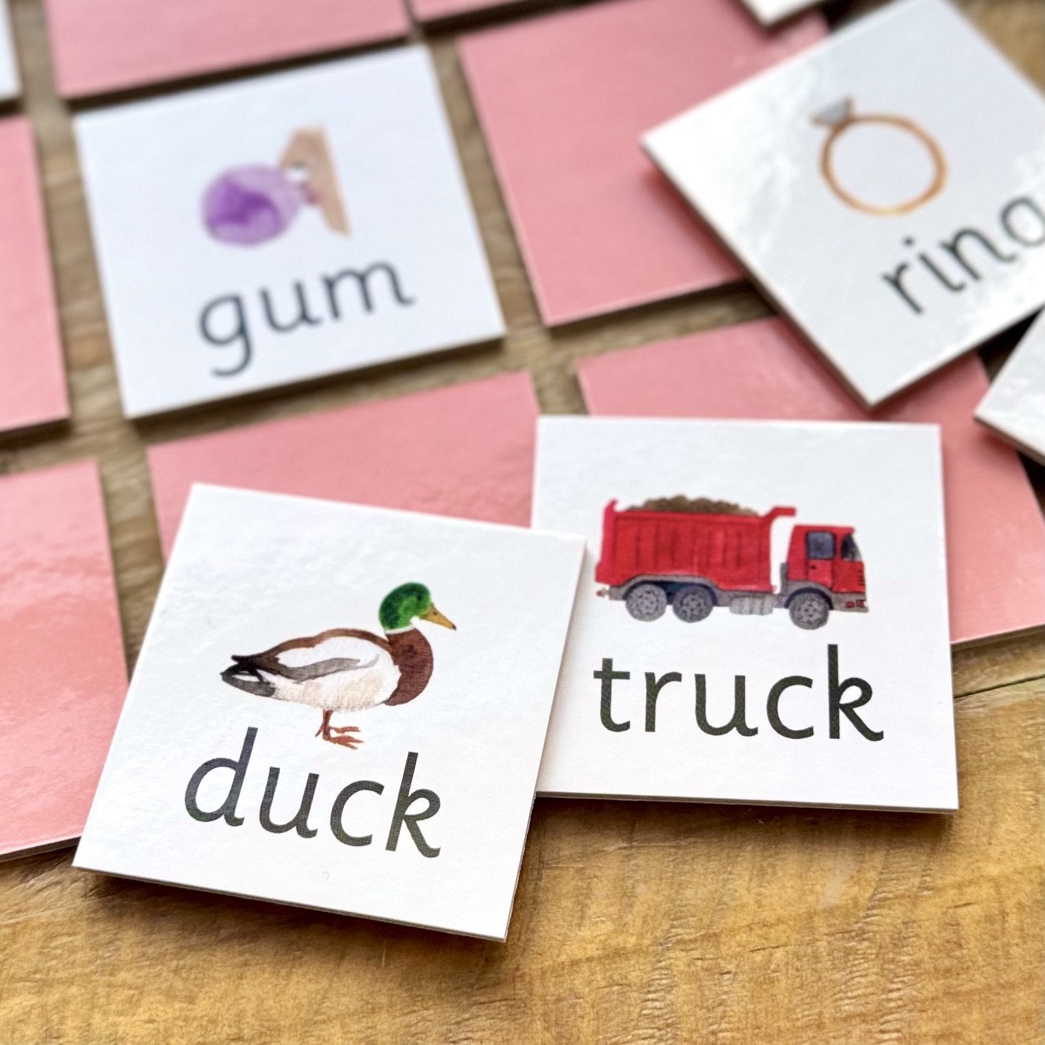 ✨ Rhyming Pairs – Children take turns flipping over tiles to discover matching rhyming words. Will they find dog and frog? Or perhaps ring and wing? This playful challenge builds early phonological awareness, an essential foundation for confident reading.